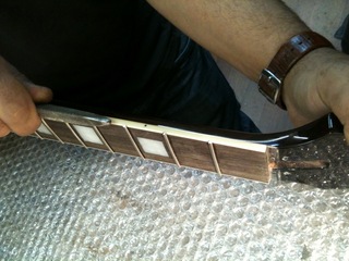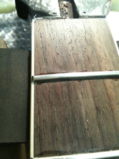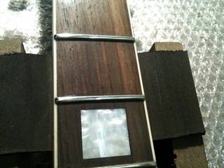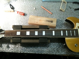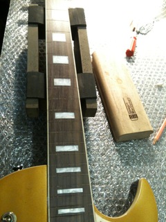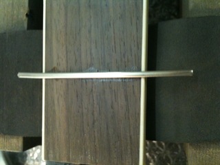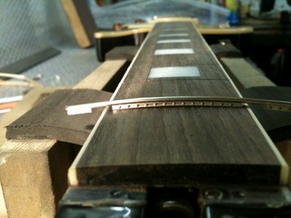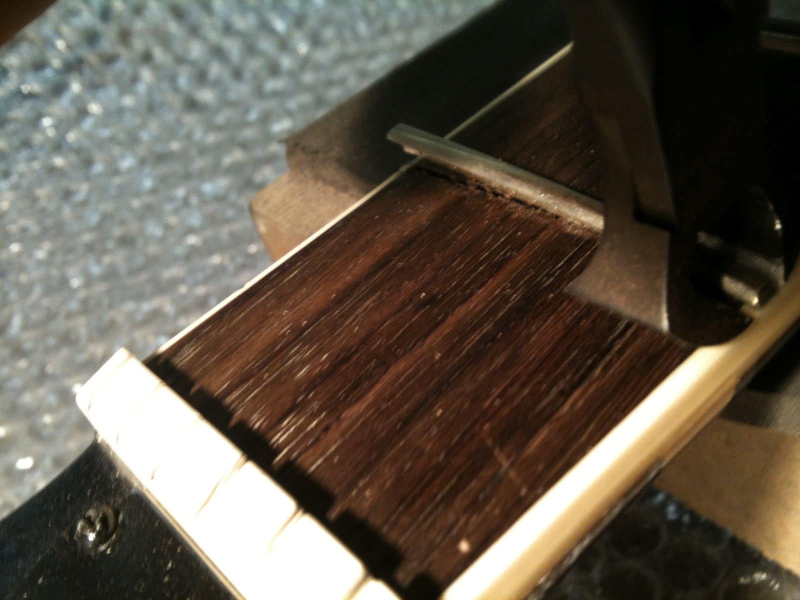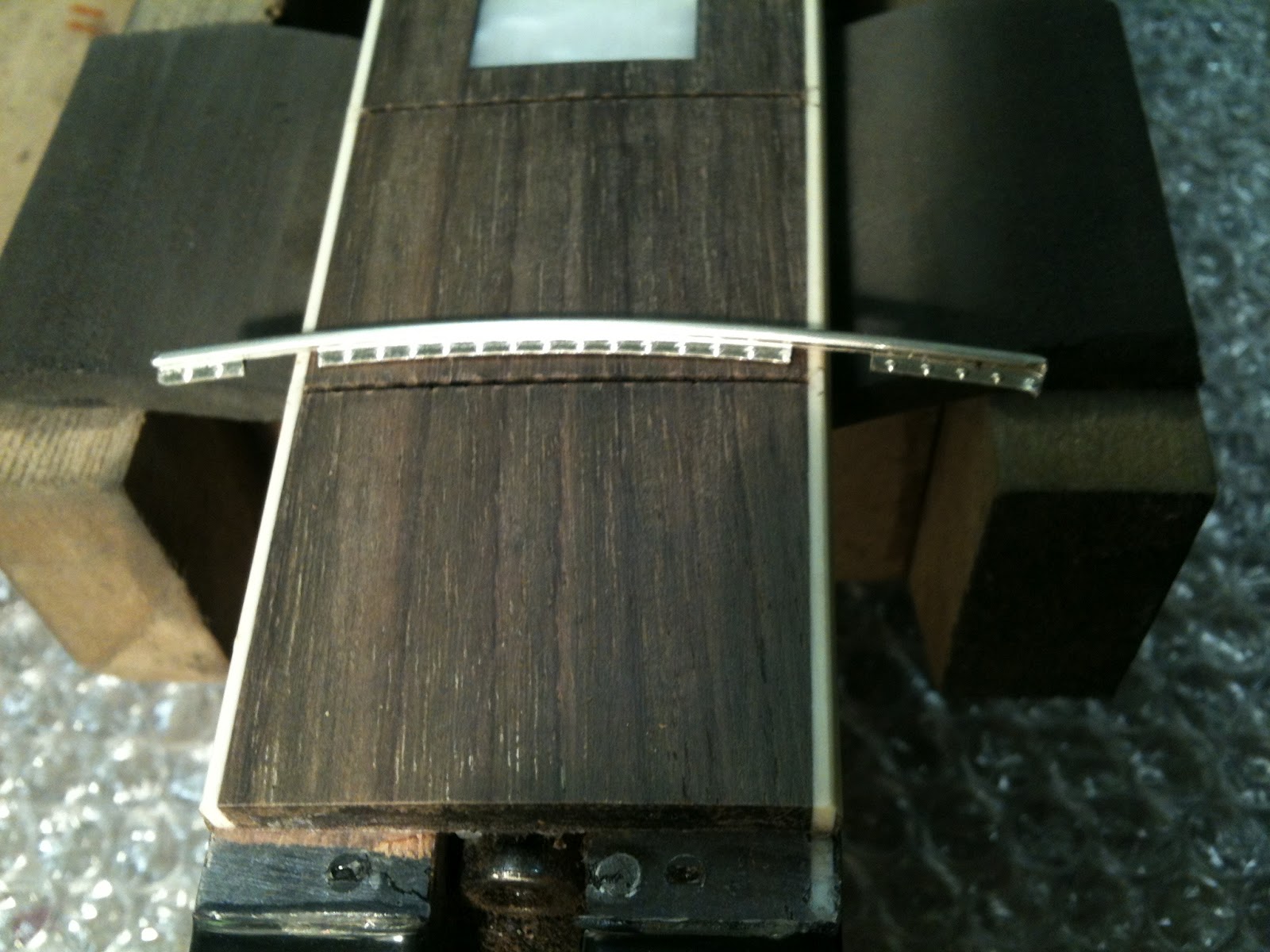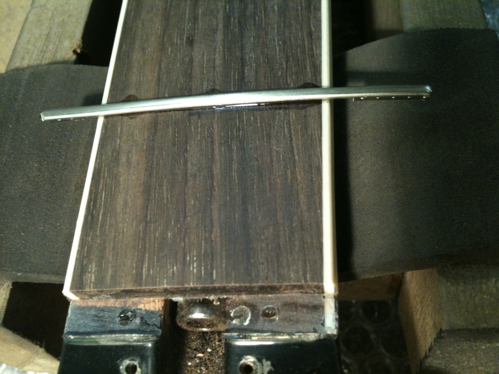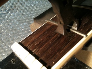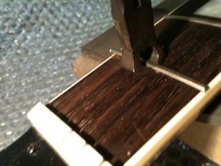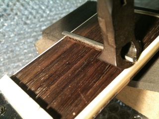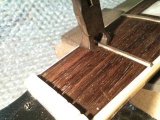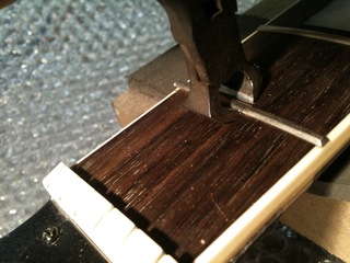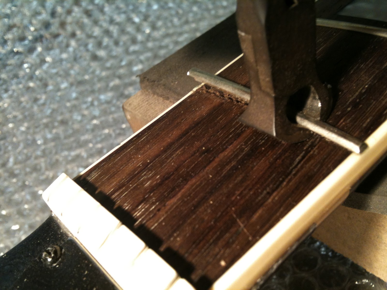 Fretleri takacağımız gitar da flato (binding) olduğundan dolayı, fretler önceden makaslanır ve flatolara zarar vermeyecek forma getirilir.