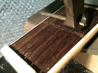 Yapıştırılmış ve sabitlenmiş bir fret detayı.