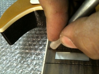 Bu işlemde fret yerine dereceli çekiç ile çakılır yada fret konumlandırma presi ile yerine oturtulur. Bu gitar da dereceli çekiç kullanılarak fretler konumlandırılmıştır.