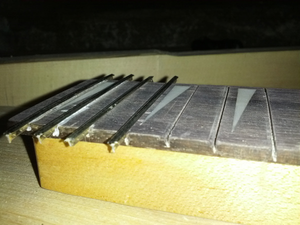 Şimdiki aşama yapıştırıcı temini olacak. İnternette gerekli aramalar sonunda epoxy veya cyanoacrylate bazlı tutkalların gerekli olduğunu görüp, tüm aramalarımızın sonucunda bunlara ulaşamayıp iyi kalitede ağaç tutkalı aldık diyelim. Bir yanlış daha yapmış olacağız. İhtiyacımız olan tutkalın cinsi çok önemli. Perde demirlerini yuvalarına bağlayacak kadar sevgi dolu olmalı fakat yavru kuşların yuvadan uçma zamanı geldiğinde de bırakmasını bilmeli. Yani deniz tutkalı kullanıp perde demirlerini sonsuza kadar sabitlemiş olmayalım. Aynı şekilde basit bir tutkal kullanıp tüm işlemlerden sonra bir süre geçince perde demirlerimiz dökülen süt dişleri gibi teker teker sapınıza veda etmemeli. Ayrıca sıkıca sabitlenmiş perdeler sustain ve ton üzerine etki edecektir, bunu unutmamak lazım.
