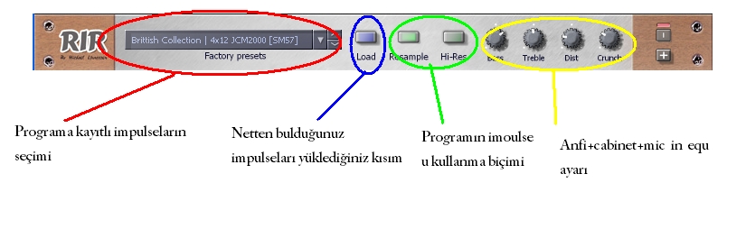 Programın impulseları kullanma şekli: Resample 96 Khz gibi yüksek frekasnla ötneklenmiş sesleri 48khz e downsample ediyor. Böylelikle %25 e yakın işlemci tasarrufu sağlanıyor. Hi-res ise Guitar rig 2 de de anlattığım gibi sesi işelrkenki kaliteyi arttırıyor. Açılması halinde işlemci yükü artıyor.